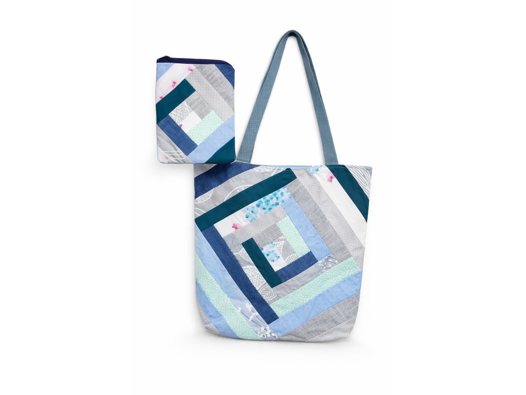 Patchworkový set taška a kosmetická taštička – modro-zelený