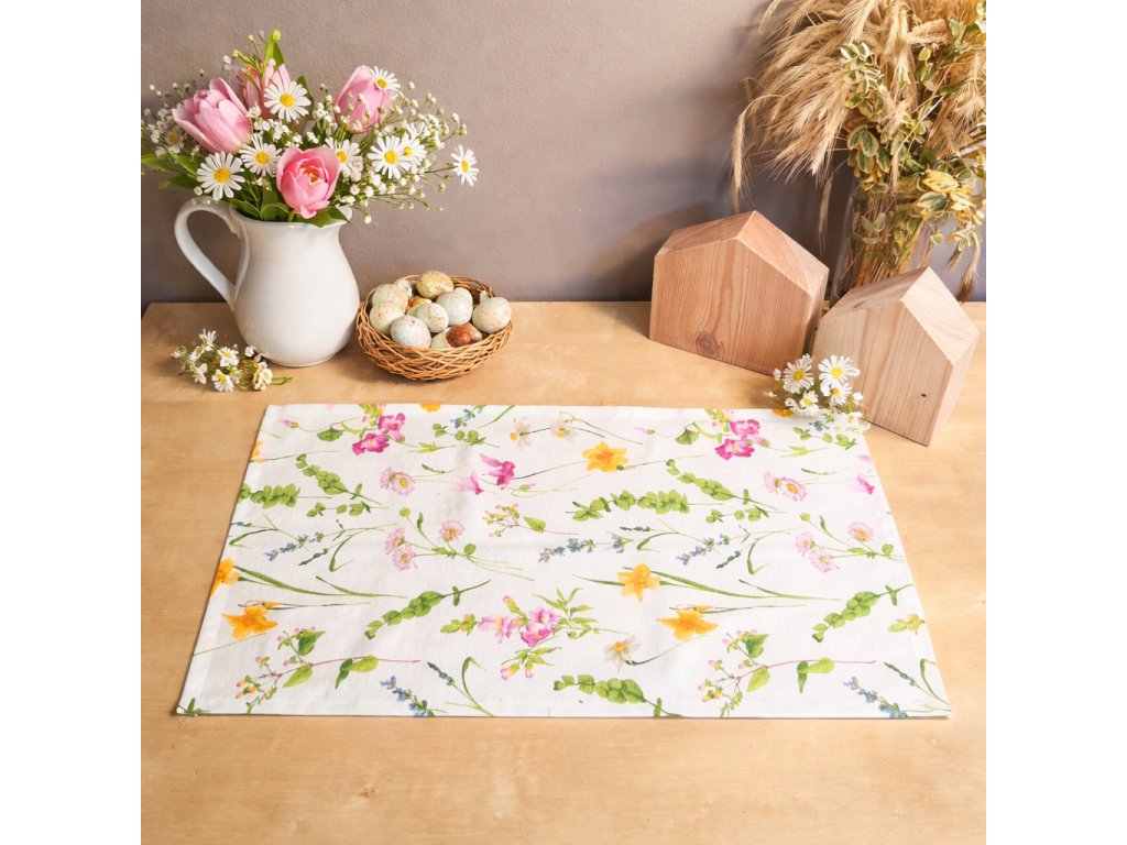 Textil je vyroben z kvalitní bavlněné látky, která je příjemná na dotek, dobře drží tvar a snadno se udržuje. Ideální pro každodenní stolování i slavnostní jarní a velikonoční dekoraci.