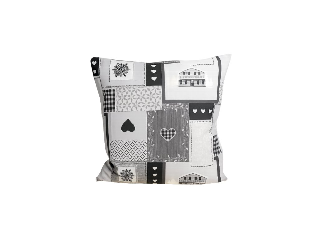 Vánoční povlak na polštář 40×40 cm – s motivem domků barva červená, šedá